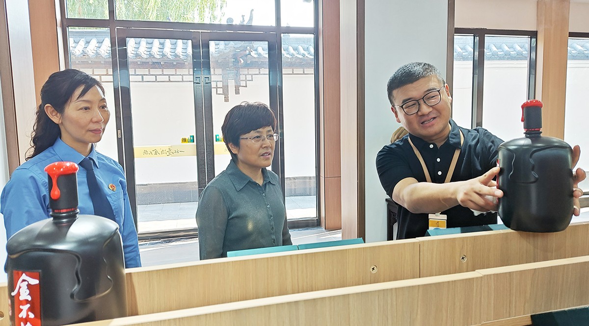 劉繼英一行在金不換集團黨委書記、總裁支濤的陪同下,實地查看了金不換白酒儲藏、銷售、生產(chǎn)、文化展示基地。聽取企業(yè)生產(chǎn)經(jīng)營情況和發(fā)展規(guī)劃介紹。劉繼英檢察長對金不換多年來堅持守法誠信經(jīng)營,創(chuàng)造良好生產(chǎn)經(jīng)營環(huán)境,取得高質量發(fā)展給予高度贊揚。